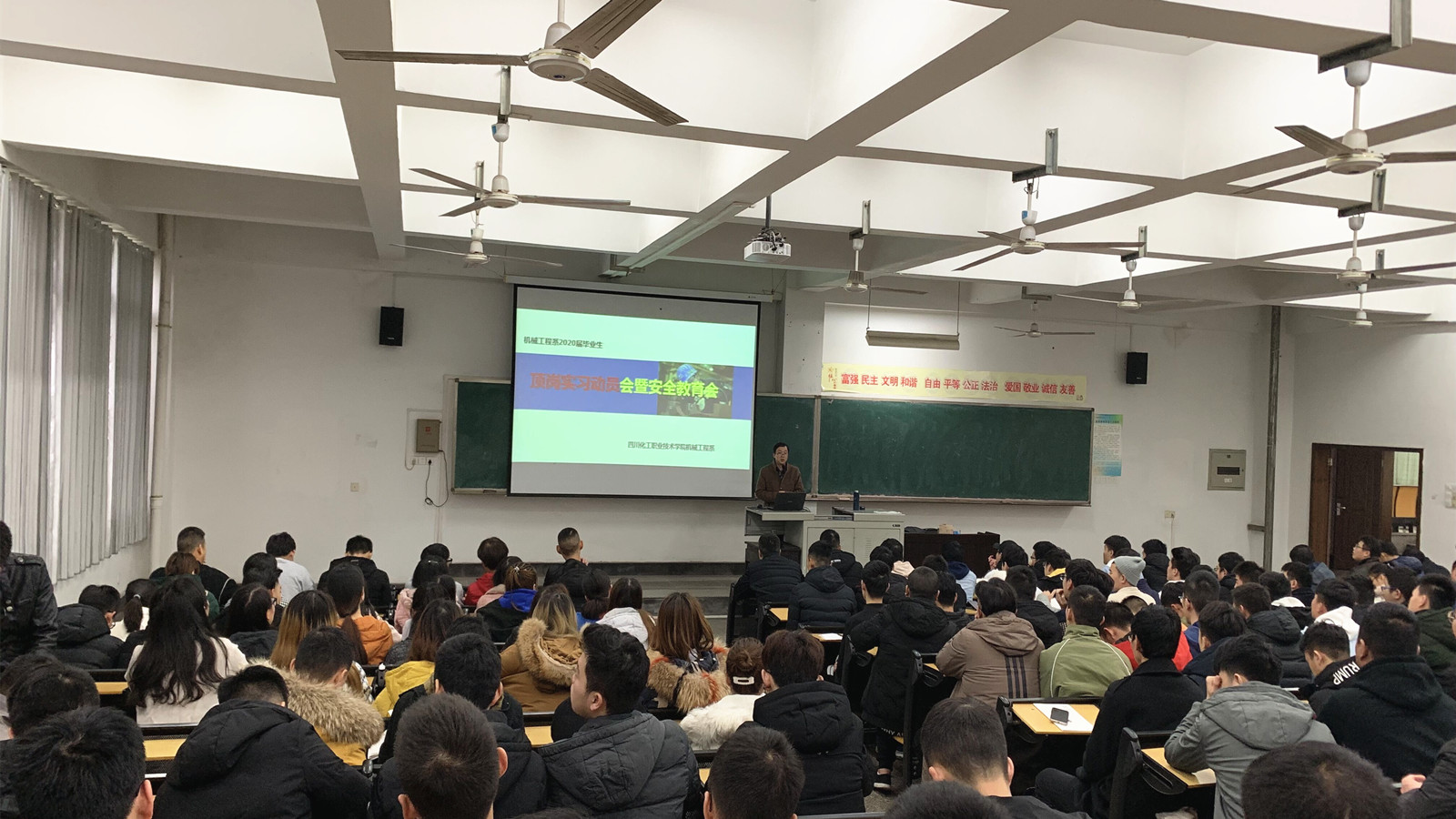 为加强学生顶岗实习管理,确保顶岗实习工作顺利进行。11月27日,机械工程系在实A308先后召开了两场顶岗实习动员及安全教育大会,机械工程系领导、各专业指导老师、辅导员和2017级全体学生参加了此次大会,会议由机械工程系任小鸿副主任主讲。