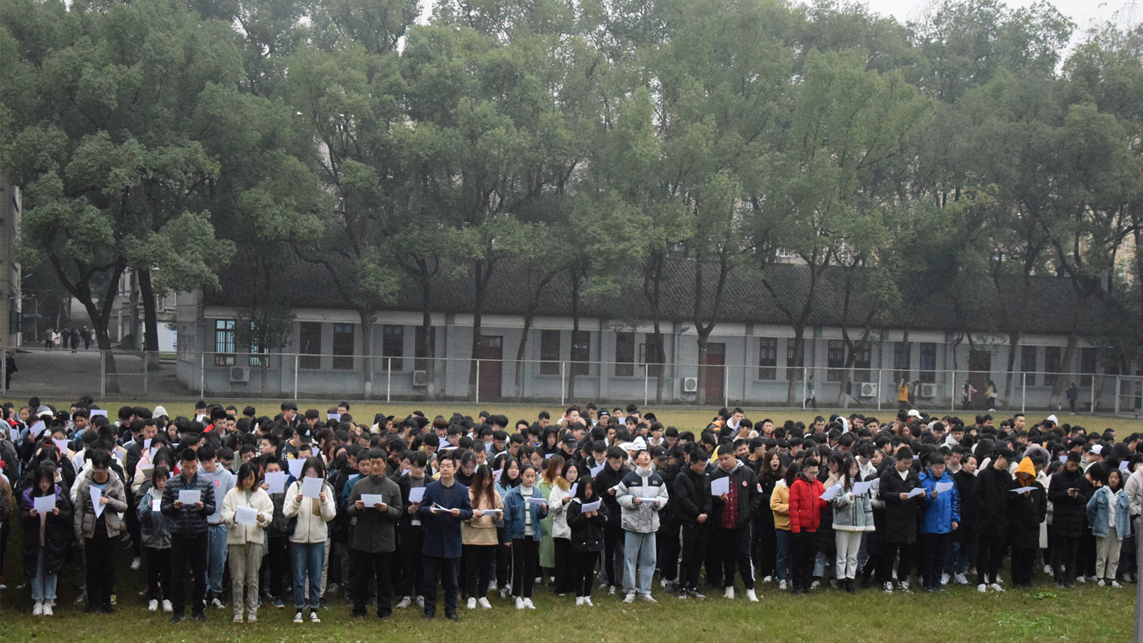 最后,在主持人的带领下,现场全体师生进行了宪法晨读活动,大声朗读宪法的部分条例。