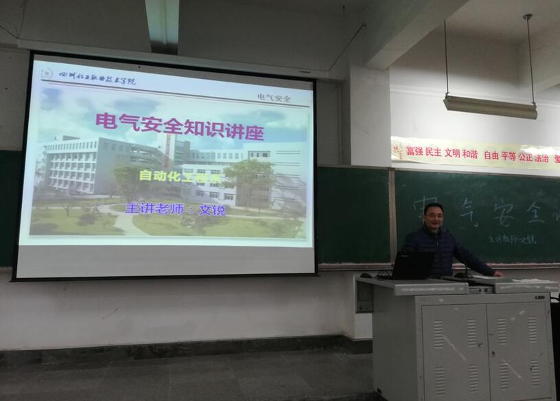 近日,自动化工程系举办了用电安全知识讲座,讲座由文锐老师主讲。文老师是我院从天华股份有限公司引进的高级工程师,具有注册电气工程师资质,多年来工作在企业一线,具有丰富的实践经验。