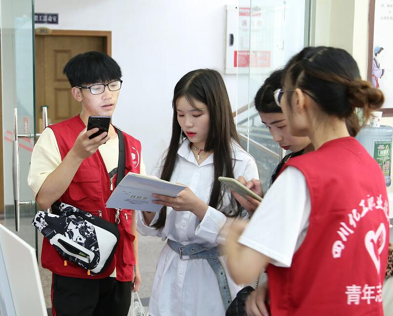 校园内外,红色马甲身影勤;满腔热情,青春绽放喜迎新。在汽车站、学校门口、新生接待点、绿色通道咨询处都有他们忙碌的身影。新生抵达校园后,各系学生志愿者们热情上前,帮助新同学拿行李、带领他们办理报到手续、介绍学院发展,直至每位新同学到达宿舍顺利入住。一张张热情的笑脸,一句句亲切的问候,一项项贴心的服务,欢迎远方而来的家人,感染着入学新生和家长,使2019级新同学更快成为四川化院大家庭中的一员。志愿者的亲情引导,热情服务,让新生有一种家的温暖,受到了新生和家长的肯定,也正是这群可爱的志愿者,使新生的报到工作更加安全有序、顺利开展。