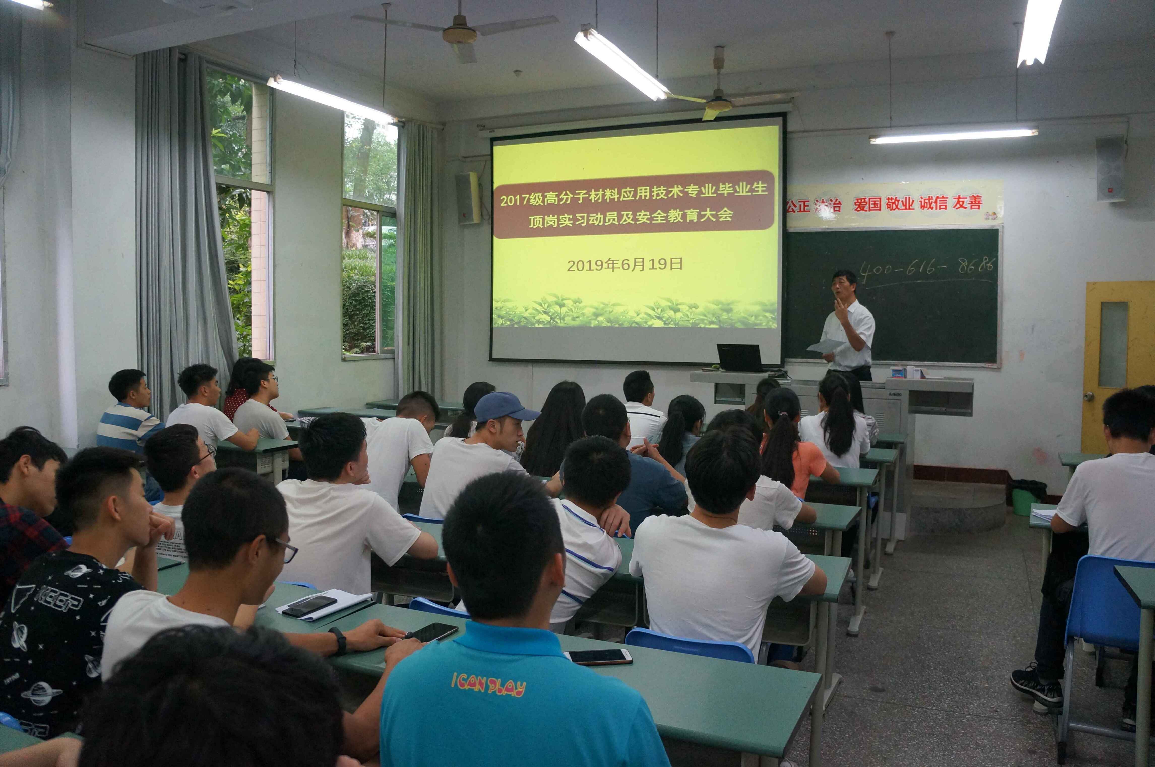 为加强学生顶岗实习管理,增强学生安全意识,确保顶岗实习工作顺利进行。2019年6月19日,化学工程系召开了顶岗实习动员暨安全教育大会,化学工程系领导、各专业指导老师、辅导员和2017级全体学生参加了此次大会。