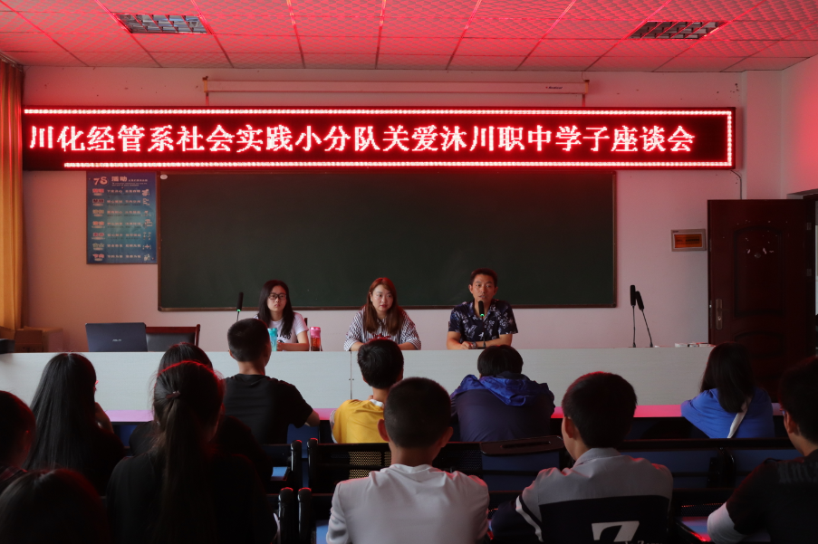 为帮助沐川职业中等学校的学生解决“学业和职业上的困惑”,社会实践小分队成员与沐川职校的30名学生代表展开了座谈会交流,在座谈会上,同学们踊跃举手发言提出困惑,经管系两名优秀学生代表结合自身经历为他们提出了一些可行性的建议,希望通过此次座谈会交流让他们能够深受启发,更好地投入到学习当中。