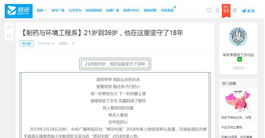 易环站将在易班平台陆续推出“感动中国十大人物”宣传活动,使同学们自觉学习时代楷模的光荣事迹,进一步了解新时代的“英雄们”坚守的道德准则以及这些人的工作所体现的社会主义核心价值观。