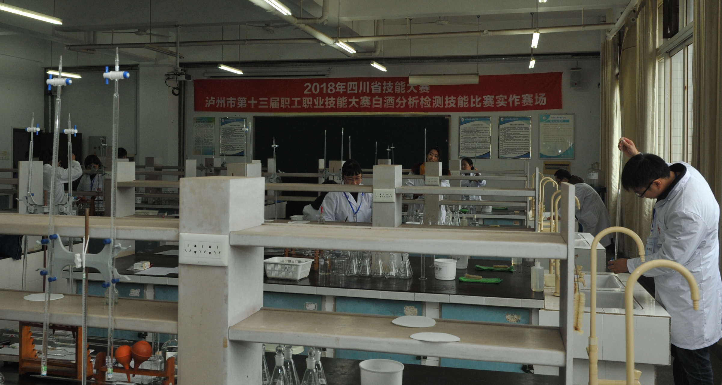 据了解,此次大赛以白酒分析检测为主题,现场比拼白酒检测技能技巧。比赛共分为两场——理论考试和实际操作考试,报名参赛的职工涵盖了各个工作阶层。比赛中,各位参赛的职工选手全力以赴,认真比拼,充分地展示我们泸州酒业界检测人员的精湛技艺和良好的精神风貌!