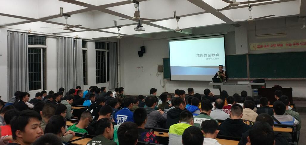 为贯彻落实《国务院关于加快发展现代职业教育的决定》(国发〔2014〕19号)、《四川省人民政府关于加快发展现代职业教育的实施意见》(川府发〔2014〕48号)、教育部等五部门印发《职业学校学生实习管理规定》(教职成【2016】3号)和学院相关文件的精神,切实加强学生的安全意识,提升学生自身修养。10月15日晚,自动化工程系在实A108对即将进入顶岗实习的2016级学生开展了安全教育活动。自动化工程系2016级电气和机电专业的全体学生参加了学习。