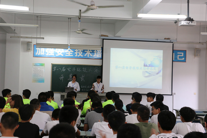 本届电子技能大赛包括电子产品装备调试、电气控制、小电器产品制作三个项目,分为个人赛和团队形式赛,能够很好的培养学生动手能力、创新能力、协作能力,有效实现“以赛促学”、“以赛促教”。本次大赛负责人和参赛学生代表分别在发言中承诺将严格按照规则进行,坚持公平、公正原则,确保大赛圆满成功。