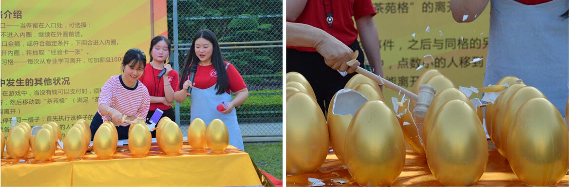 比赛所用的棋盘,是由经管系学生会参照大学生活独立设计完成,涵盖了专业学习、套读本科、勤工俭学、参与第二课堂活动等方方面面,旨在以寓教于乐的形式,引导同学们思考如何充实地度过大学生活。比赛中,更有需要团队合作完成的互动项目,紧张激烈的比赛现场欢声笑语连连。