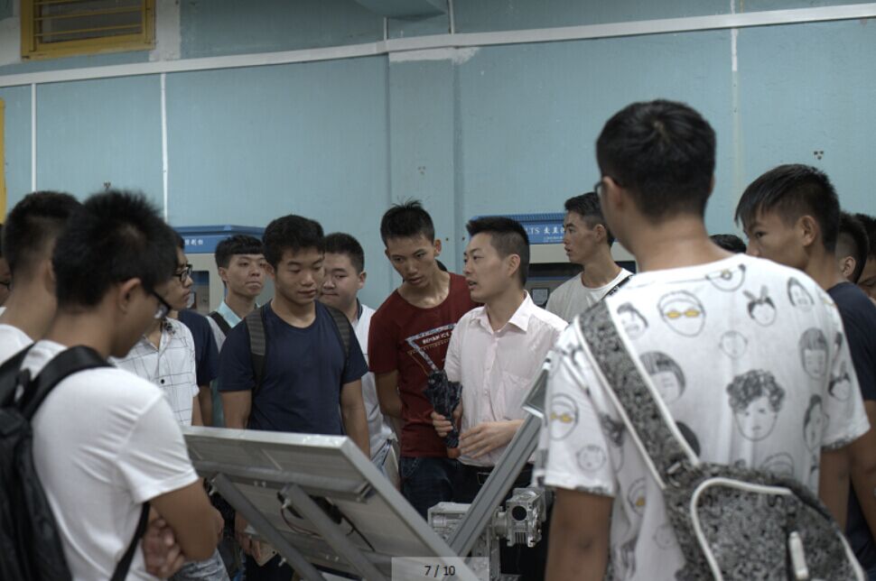 座谈结束后,分别组织新生到我系先进自动化示范综合实训室、风力发电和光伏发电实训、电子创新实训室等实训场地参观。每到一处,教师都耐心讲解实训设备的基本情况,以及实训室开展的科研工作,并向大家展示了我系参加技能比赛的优秀作品。