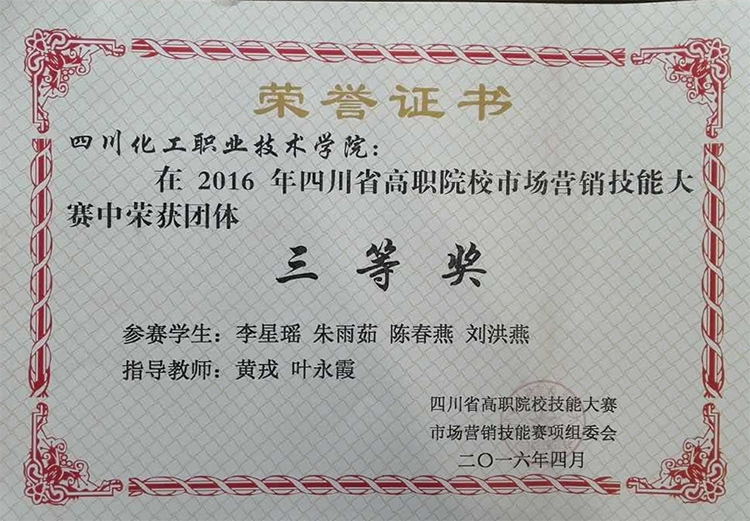 4月16日,由四川省教育厅主办、四川商务职业学院承办、全国商业职业教育教学指导委员会协办的“2016年四川省高职院校市场营销技能大赛”在四川商务职业学院举行。经过激烈角逐,学院代表队荣获三等奖。
