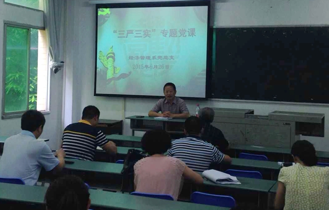 6月26日,学院蒲开伦副院长为经济管理系党总支全体教师讲了一堂“三严三实”专题党课。作为落实学院党委“三严三实”专题教育的重要环节,本次活动对推进经管系党总支党建工作有重要意义。