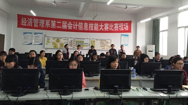 近日,经济管理系举办了以“中国梦 奋斗梦”为主题的第二届会计信息技能大赛,经济管理系会计教研室全体老师,会计专业部分学生观看了整个比赛。