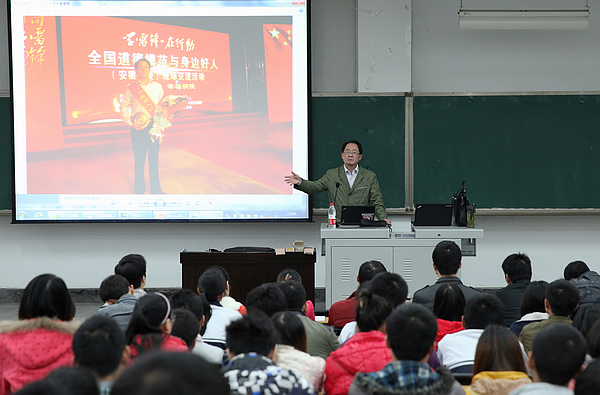 为了教育和引导大学生加强自我修养,帮助大学生树立正确的世界观、人生观、价值观,促进大学生的全面发展,为终身发展奠定思想道德基础,2013年10月31日下午,自动化工程系在实训楼A区108室举行了大学生职业道德修养专题讲座。特别邀请了安徽芜湖市2012年度十大新闻人物、2013年1月当选的《中国好人榜》助人为乐好人、芜湖市芜湖县农村人才培训中心主任陶贤林作专题演讲。本次讲座由自动化工程系主任陈昌涛主持,自动化工程系全体教师和2011级毕业班全体学生参加了讲座。