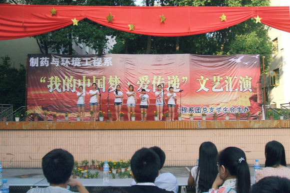 5月26日下午,初夏的校园艳阳高照,歌声飞扬,处处洋溢着浓郁的青春气息。为深入学习宣传贯彻党的十八大精神,引导学生深刻理解实现国家富强、民族复兴、人民幸福的伟大“中国梦”内涵,培养学生爱国主义情感,弘扬伟大抗震救灾精神,促进校园文化建设,制药与环境工程系在学院小操场举办了“我的中国梦•爱传递”文艺汇演。