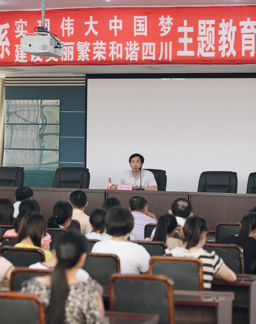 6月4日下午,制药与环境工程系党总支按照学院党委的部署安排,在行政楼五楼会议室举行“实现伟大中国梦,建设美丽繁荣和谐四川”主题教育活动宣讲报告会,邀请学院领导做题为《推进建设社会主义文化强国,为实现中国梦奠定思想基础》的专题报告。制药与环境工程系教职工党员、学生党员、入党积极分子等200余人参加了报告会。