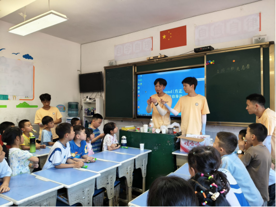随后的科技小课堂成为点燃好奇心的关键一环。纸杯传声筒让孩子们理解声波振动与通讯技术的关联,回形针磁悬浮直观展现磁场原理与磁悬浮列车的应用,水面悬浮指南针则串联起古人智慧与现代导航技术。队员们将抽象的科学原理转化为可触可感的实验,引导孩子们发现“科学藏在生活里”,锻炼了孩子们的动手与逻辑思维能力,也在他们心中种下探索未知的种子。
