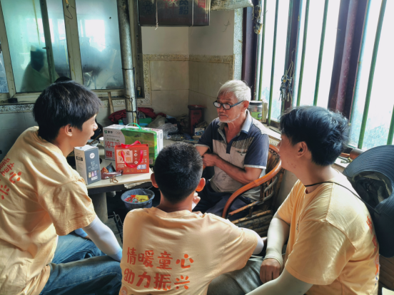实践的最后一天,团队深入摩尼镇金榜村,架起代际沟通的桥梁。走访留守儿童家庭时,队员们通过问卷与面谈,了解到孩子们因父母务工导致的情感缺失、学业辅导不足等问题,初步制定,承诺提供持续的学业辅导与心理关怀。