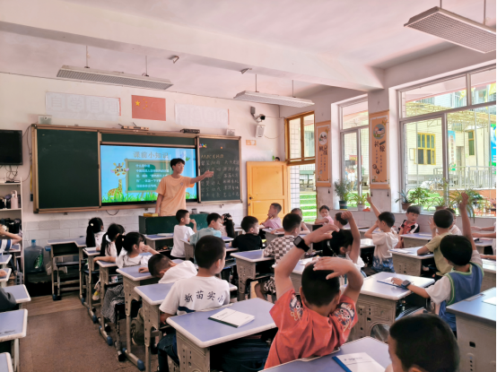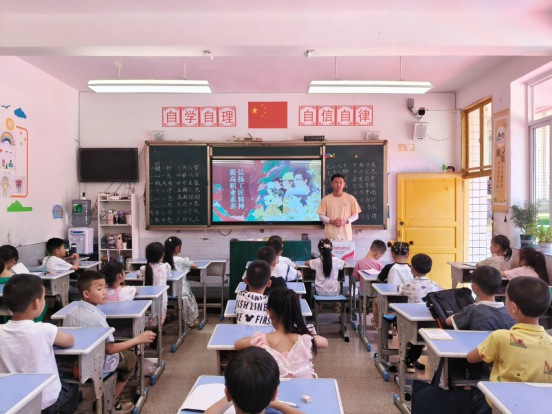 7月3日,团队创新采用“安全守护+文化浸润”双轨模式,为乡村儿童成长筑牢防线。上午的“防溺水、防暑安全守护盾”课堂上,队员们结合真实案例,用通俗语言解析溺水危害与预防要诀,现场示范自救互救技能;通过情景模拟与趣味问答,系统讲解中暑的识别与应急处理,让“安全第一”的理念深植童心。