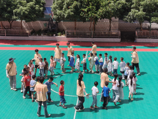 7月2日,实践以一场充满活力的启幕活动拉开序幕。抵达摩尼镇新苗小学后,团队首先通过保龄球、接力赛、数字贴等破冰游戏,让孩子们在欢声笑语中与队员们熟悉亲近,操场上的加油声与欢笑声交织,悄然播下团队协作与自信的种子。
