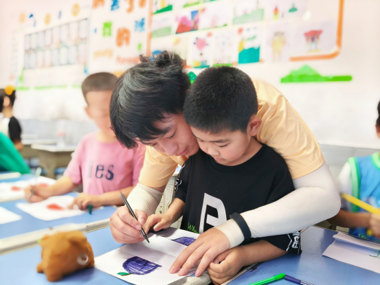 7月4日,聚焦乡村儿童全面发展,团队开展“美育+职业+精神“三维赋能活动。趣味折叠画课堂上,一张纸经折叠、绘画、展开,变成立体动物或秘密花园,孩子们在“折-画-展”中理解空间创意,释放艺术想象力;歌舞课堂里,稚嫩的歌声与灵动的舞姿交织,让艺术滋养心灵,呼应“以美育人”的教育方针。