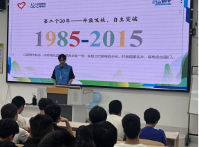 为弘扬爱国主义精神,厚植家国情怀,智能制造学院“核梦传承”宣讲团于9月10日在勤学楼11A107教室组织开展“两弹一星”精神志愿宣讲主题讲座。通过历史回顾、故事分享,带领同学们走进党领导下的中国核工业发展历程。