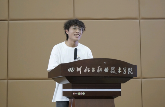 数媒2331班张清友同学曾获四川省职业院校技能大赛高职组二等奖、全国大学生广告艺术大赛四川赛区三等奖等多项荣誉。他通过分享创作过程中的挑战与突破,强调团队协作与创新思维的重要性,鼓舞同学们勇于尝试、敢于突破。​