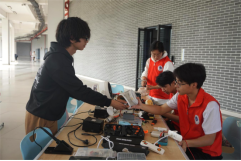 活动当天,维修现场有条不紊。在博学楼C-D连廊楼下,维修团队耐心地为同学们维修台灯、吹风机、手机等小型电器,针对无法现场修复的设备,详细记录信息。在维修过程中,志愿者们还热情地向师生们讲解设备日常保养和简单故障处理方法,帮助大家提升动手能力。