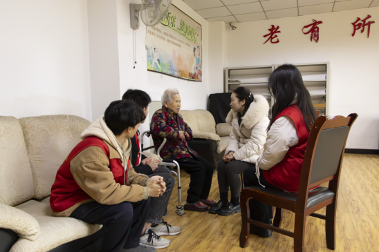 大家围坐在一起,专注聆听老人们讲述往昔故事。从青春时的拼搏奋斗,到生活里的点滴琐事,每一段回忆都承载着岁月印记。志愿者们不时提问,眼神满是关切,欢声笑语在房间里回荡。对于行动不便的老人,志愿者们主动前往老人的房间,耐心服务,轻声询问生活需求,老人们脸上洋溢着幸福笑容。
