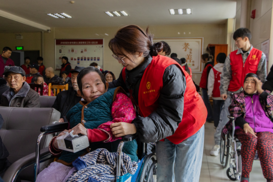 抵达敬老院后,志愿者们迅速融入了这个充满温情的大家庭,与老人们进行了亲切的交流与互动,耐心倾听他们的心声与故事。在敬老院的活动室内,志愿者们精心准备了一场文艺表演,为老人们带来了欢声笑语。表演结束后,一位深受感动的老人主动登台献唱,用歌声向志愿者们表达深深的谢意,泪水在眼眶中打转,场面温馨而感人。随后,志愿者们为老人们送上了精心准备的慰问品,并细心关照他们要注意身体健康,言语间充满了关怀与温暖。