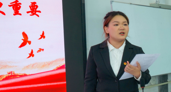 活动结束,张霞老师对此次沉浸式示范性主题团日活动进行点评总结。她指出,本次团日活动主题鲜明,形式新颖,同学们充分展现了自己的青春活力,抒发了自己的爱国情怀;作为新时代的青年学子,我们不仅要铭记历史、感恩时代,更要勇于担当、砥砺前行,以实际行动为实现中华民族伟大复兴的中国梦贡献自己的青春力量。