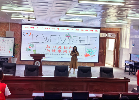 为进一步普及心理健康教育知识,提高社区内中学生对心理健康的科学认知水平,引导学生形成健康、乐观、积极的学习和生活态度,促进学生健康成长。2024年5月31日,经济管理学院白鸽青年志愿者服务队到泸州十中开展了心理健康主题讲座,本次讲座邀请到学校心理中心刘敏老师主讲。