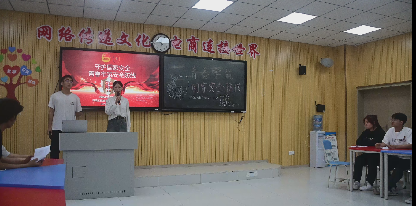 为引导广大团员青年深入学习贯彻总体国家安全观,切实增强忧患意识和使命担当,药品与环境工程学院于2024年4月12日在博学楼8L205开展了以“青春筑牢国家安全防线”为主题的示范主题团日活动。团总支书记余钰淋、团总支组织部全体成员、各班团支书、环境工程技术2331班团支部和环境工程技术2332团支部全体团员和青年共110余人到会。