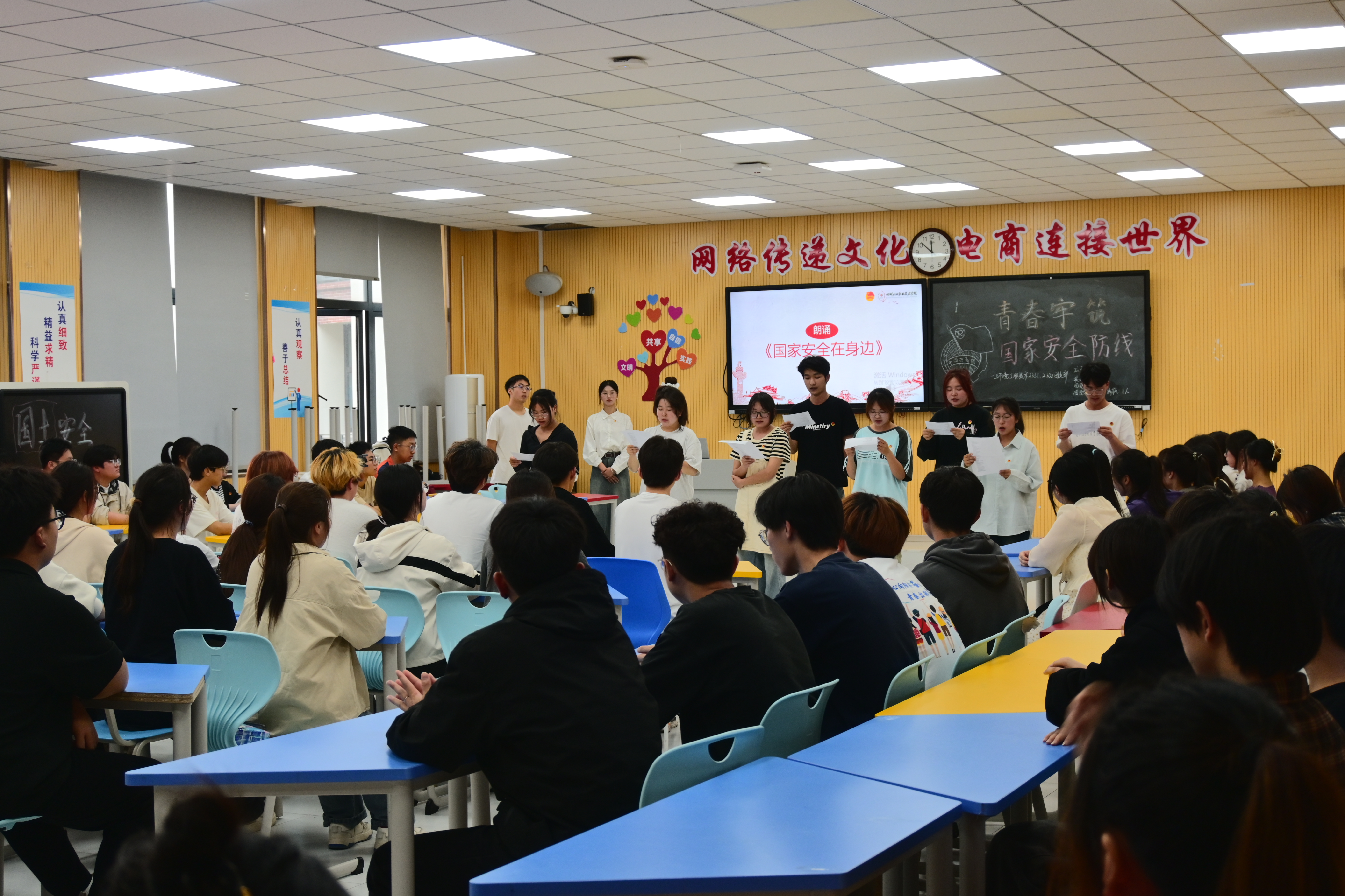 活动现场,通过演唱歌曲《丹心与共》、诗朗诵《国家安全在身边》以及《保密传送》游戏与理论宣讲相结合的“文艺表演+理论宣讲”平台,不仅为班上同学提供才艺展示的机会,更是一次增强班级凝聚力和向心力,发扬班级团结友爱、共同进步精神,增进班级之间友谊的盛会,使得国家安全基本内涵入脑更入心。