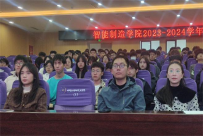 为进一步加强学生干部队伍建设,推动学生会工作进程,更好地服务青年学生成长成才,2023年11月28日晚,智能制造学院在图书馆四楼第二报告厅举行了第十五届学生会总结大会暨第十六届换届仪式,本次大会出席的有智能制造学院团总支书记周羽乔、智能制造学院教师苏红钢、黄玉枢。