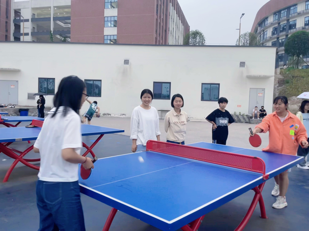 肖婷老师全程在赛场观看同学们的比赛,为同学们加油。运动员在比赛过程中挥汗如雨,积极拼搏,不到最后一刻,绝不放弃的精神深深打动了在场的每一个人,本次比赛在一片和谐欢笑中圆满结束,这不仅为广大同学提供了一个相互交流、切磋球技的机会,还加深了同学们对乒乓球运动的理解和认识。