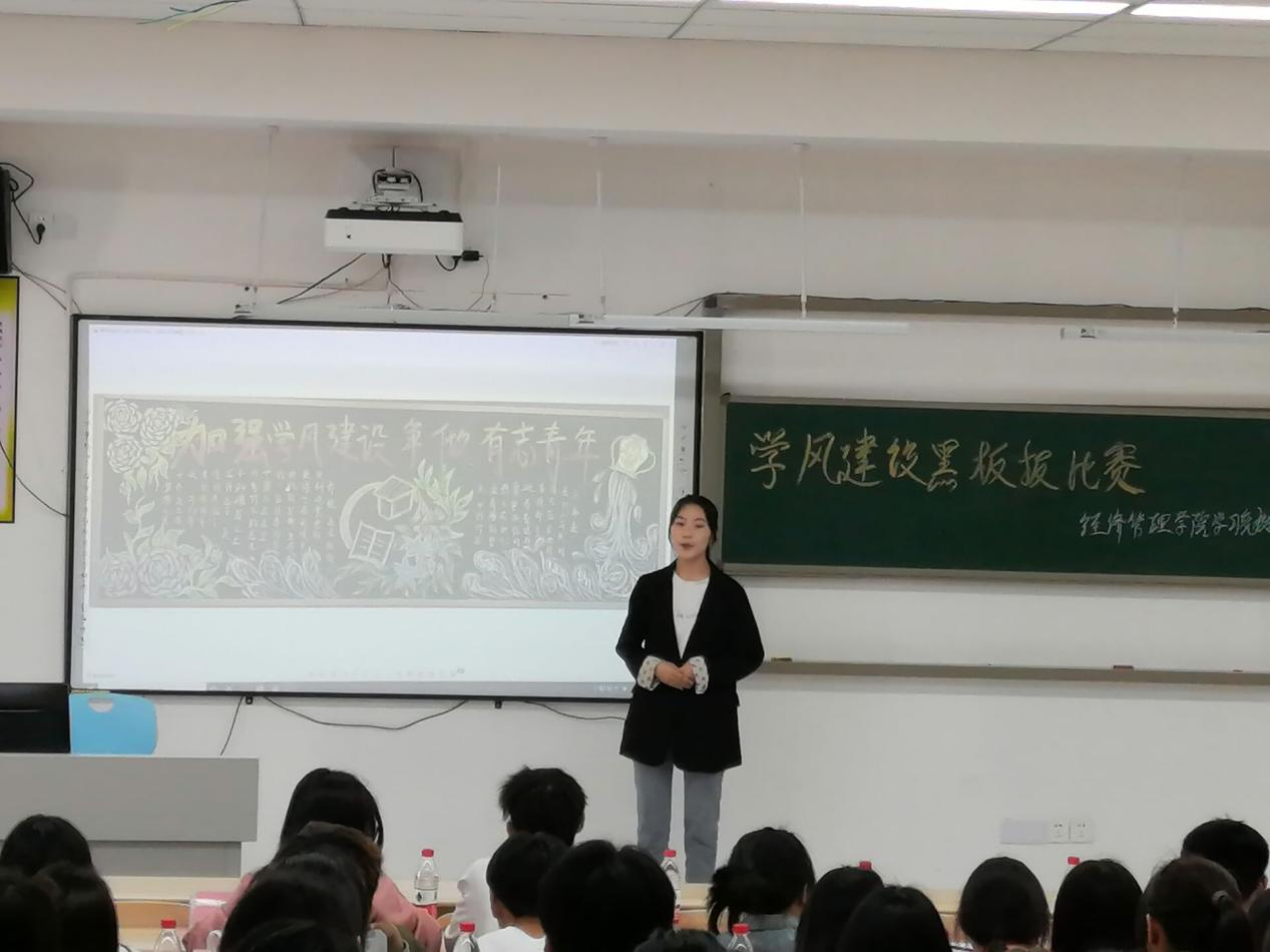 为了培养学生的自主学习能力,增强学习积极性,建立良好的学风,为学生的成长成才营造良好的学习环境。2022年4月13日下午,经济管理学院学习竞技部在勤学楼11A203开展了“加强学风建设,争做有志青年”黑板报比赛。经济管理学院共13个班级、100余人参加比赛。经济管理学院学生会各部门负责人作为评委进行评比。