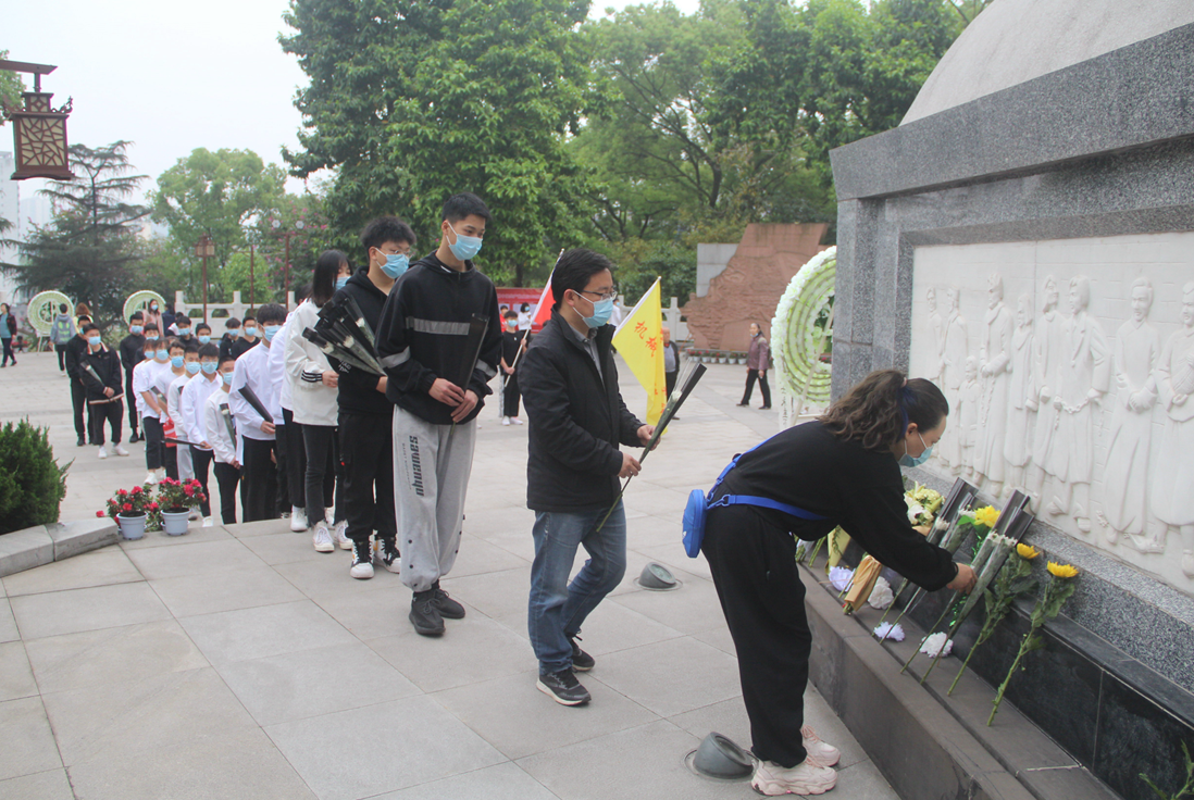整齐的学生队伍怀着深深的缅怀之情来到烈士陵园,国歌缓缓响起,扫墓活动开始。学生会代表来到烈士纪念碑前向烈士献上花圈,大家共同低头向烈士默哀一分钟,以示对烈士最崇高的敬意。机械工程学院团总支书记蒲蕾老师指出:正是有了先烈们不怕艰苦,历经磨难,只为实现中华民族伟大复兴的信念,才有我们现在的美好生活。我们应当学习先烈们顽强不屈,视死如归,精忠报国的精神。同学们围绕烈士陵有秩序地把手上的鲜花献上,以表心意。