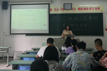 2021年5月12日,药品与环境工程学院学生党支部在综A503教室召开学习中共中央印发《中国共产党普通高等学校基层组织工作条例》文件党组织生活会。支部书记苏双双主持会议,宣传委员杨梅同志,在校学生预备党员8人参加本次会议。
