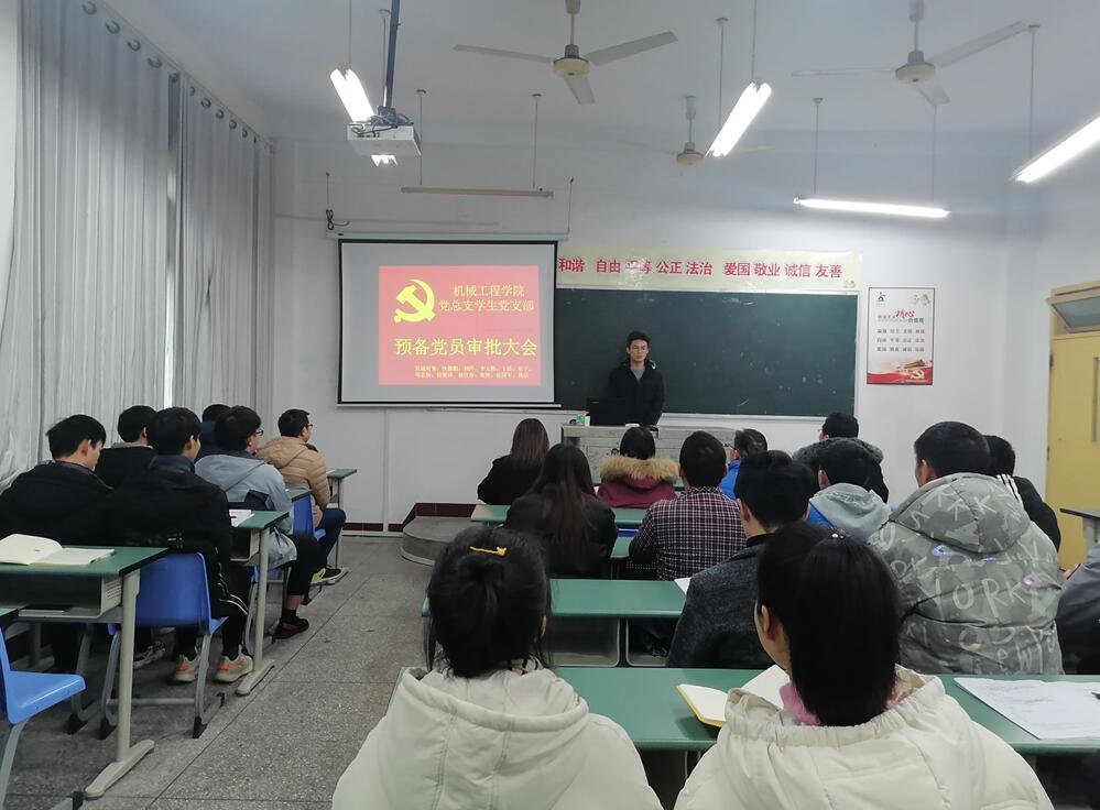 2020年12月16日,机械工程学院党总支学生党支部在综合楼A区415召开党员大会,讨论接收预备党员问题。支部正式党员、预备党员和发展对象参加了会议,会议由学院学生党支部书记张良勇主持。