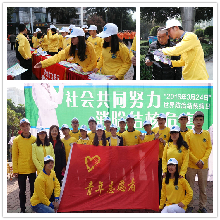 3月26日上午,学院参加了泸州市江阳区疾控中心在大梯步广场组织的“世界结核病日”宣传活动。学院大学生志愿者为市民分发宣传资料,解答有关问题,积极为市民宣传肺结核病预防知识。志愿者们的优秀表现,受到了泸州市江阳区疾控中心领导和市民的好评。志愿者们纷纷表示,作为当代大学生不仅要在校努力学习专业知识,而且要踊跃参加各项社会服务活动,努力承担起个人应有的社会责任,这样我们的生活才会更加美好。
