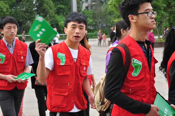 我校有68名青年志愿者参与了本次活动,启动仪式由我校志愿者刘梦雪同学主持。仪式上,泸州市江阳区环境保护局领导为6个方队授旗,华阳街道办主任讲解了本次活动路程和注意事项。此次活动结合了“4.22世界地球日”与“6.5世界环境日”两个主题,旨在向广大市民宣传低碳环保的生活理念,倡导低碳环保的生活方式。
