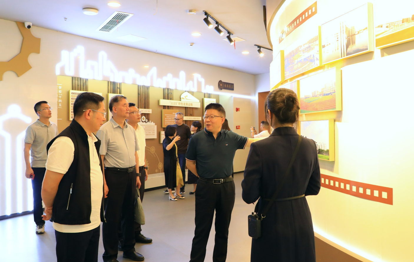 吴睫一行走进学校校史馆、图书馆、实训中心、体育馆等地,全面了解学校各功能区域布局规划、设备配置情况、日常运营和管理等具体情况。吴睫对我校在校园文化建设、实训基地建设和产教融合等方面取得的成果给予了高度评价。