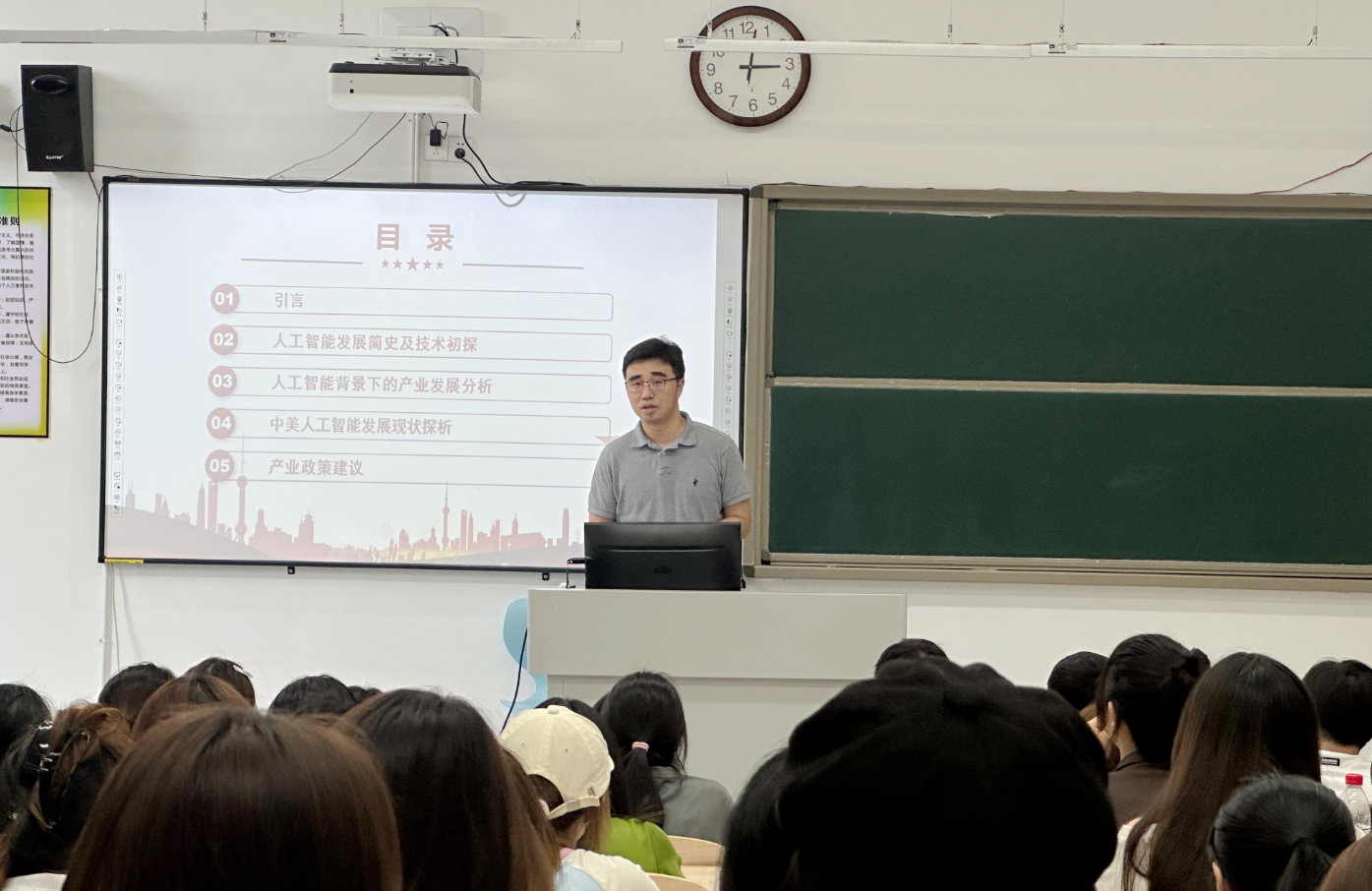 本次课程从引言、人工智能发展简史及技术初探、人工智能背景下的产业发展分析、中美人工智能发展现状探析、产业政策建议五个方面展开。吴立凡首先从当前国际形势出发,指出人工智能已成为全球科技竞争的核心领域,并强调我国人工智能在政策引领下的发展潜力;他系统回顾了人工智能从早期理论模型到现代深度学习的演进历程;在产业分析部分,他结合关键技术突破,深刻阐释了人工智能对产业变革的深远影响;吴立凡通过翔实的数据,对比了中美两国在人工智能领域的竞争现状,指出我国在应用落地和专利数量上的领先地位,同时也分析了在核心算法和基础模型研发方面面临的挑战;最后,吴立凡提出整合数字资源、推动产业协同创新等建议,为人工智能高质量发展提供了发展思路。