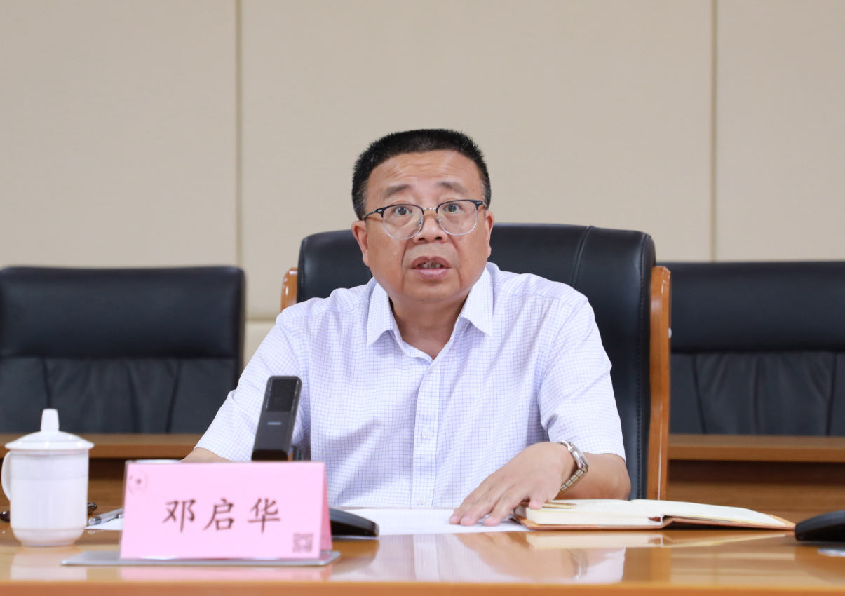 会上,邓启华对赵秋颖一行的到来表示热烈欢迎,并简要介绍了学校在科技人才引育、科研平台建设、科技成果转化以及服务地方高质量发展等方面的基本情况,详细汇报了学校在学科建设方面的进展,特别是在重点学科建设、交叉学科建设以及应用型人才培养等方面的探索和实践。他特别强调了学校在氘代化合物研发方面的突破,以及市域产教联合体共性技术研发中心的建设进展。