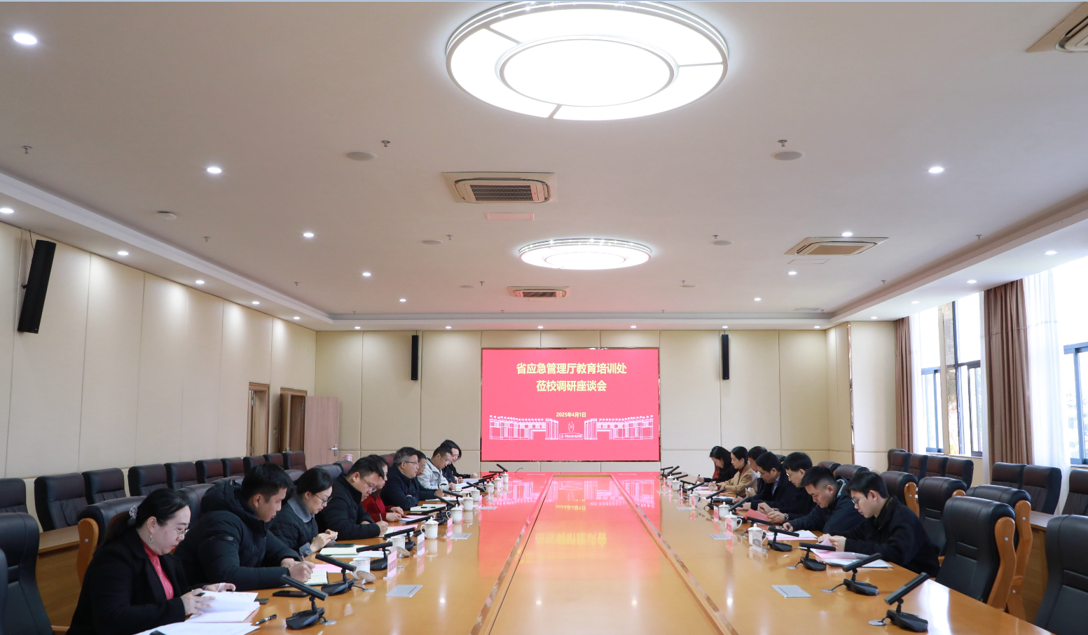 2025年4月1日,省应急管理厅教育训练处处长、一级调研员田涛率队来校调研指导工作。泸州市应急管理局机关党委书记陈晓冬,学校党委书记邓华云,党委副书记、院长文申柳,党委委员、副院长邓启华、徐丽萍陪同调研。