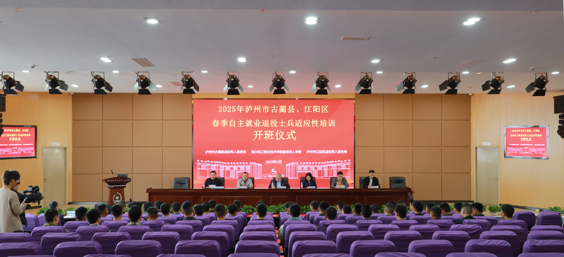 为助力退役士兵更好地适应地方经济社会发展,帮助退役士兵尽快完成角色转变,更好更快融入社会发展,迈好退役转岗“第一步”。3月26日至30日,2025年春季泸州市古蔺县、江阳区退役士兵自主就业适应性培训在学校举行,共有来自古蔺县和江阳区的58名退役士兵参加培训。开班仪式在护国校区第二学术报告厅举行。泸州市退役军人事务局党组成员、副局长罗宁,泸州市江阳区退役军人事务局党组成员、副局长晏建忠,学校党委委员、副院长徐丽萍参加开班仪式。