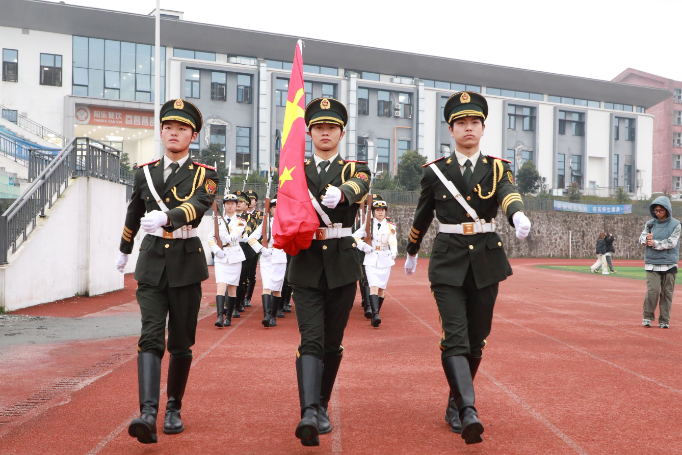 应用化工学院北方化工2331班刘佳丽、川酒学院食品检验检测2332班张景钥作为优秀在校生代表作国旗下演讲,号召全体同学要以爱国主义为引领,树立远大理想,弘扬工匠精神,不断提升自我综合素质,争做时代弄潮儿;以勇敢无畏的担当精神迎接每一个挑战,创造属于自己的精彩。