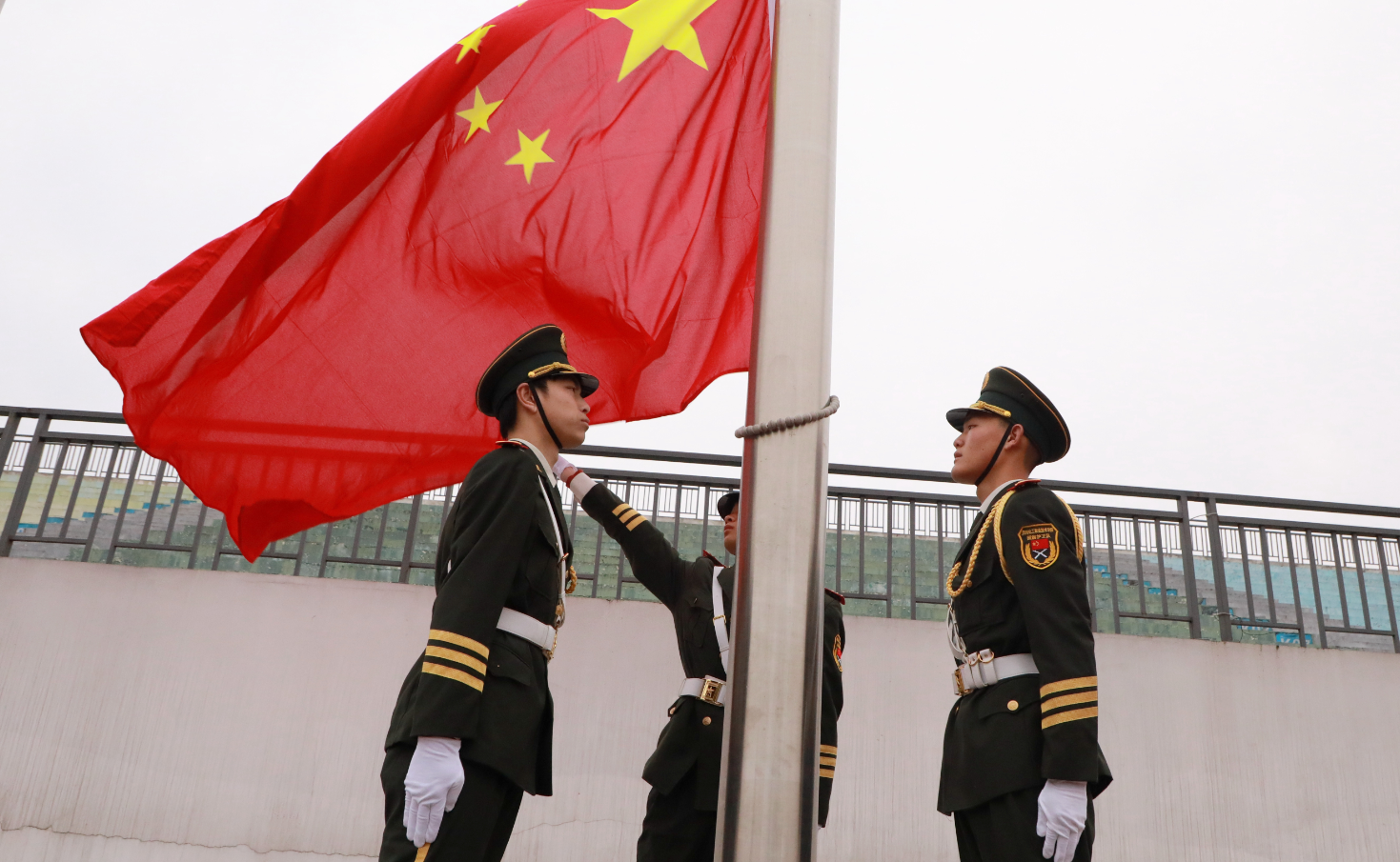 早晨8时10分,升旗仪式正式开始。国旗护卫队迈着铿锵有力的步伐走向升旗台,伴随着激昂的《义勇军进行曲》,鲜艳的五星红旗冉冉升起。全体师生肃立注目、齐唱国歌,炽热的爱国情怀在春日朝阳中激荡升腾。