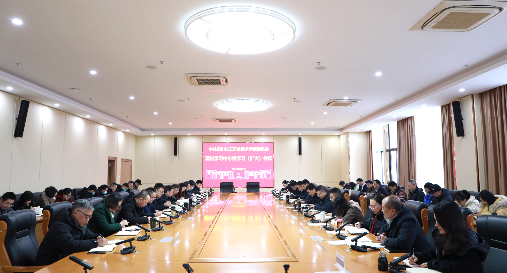 2025年1月9日,学校在综合办公楼第一会议室召开党委理论学习中心组学习(扩大)会议。学校党委书记邓华云主持会议并讲话。学校党委理论学习中心组成员、中层及以上领导干部参加会议。