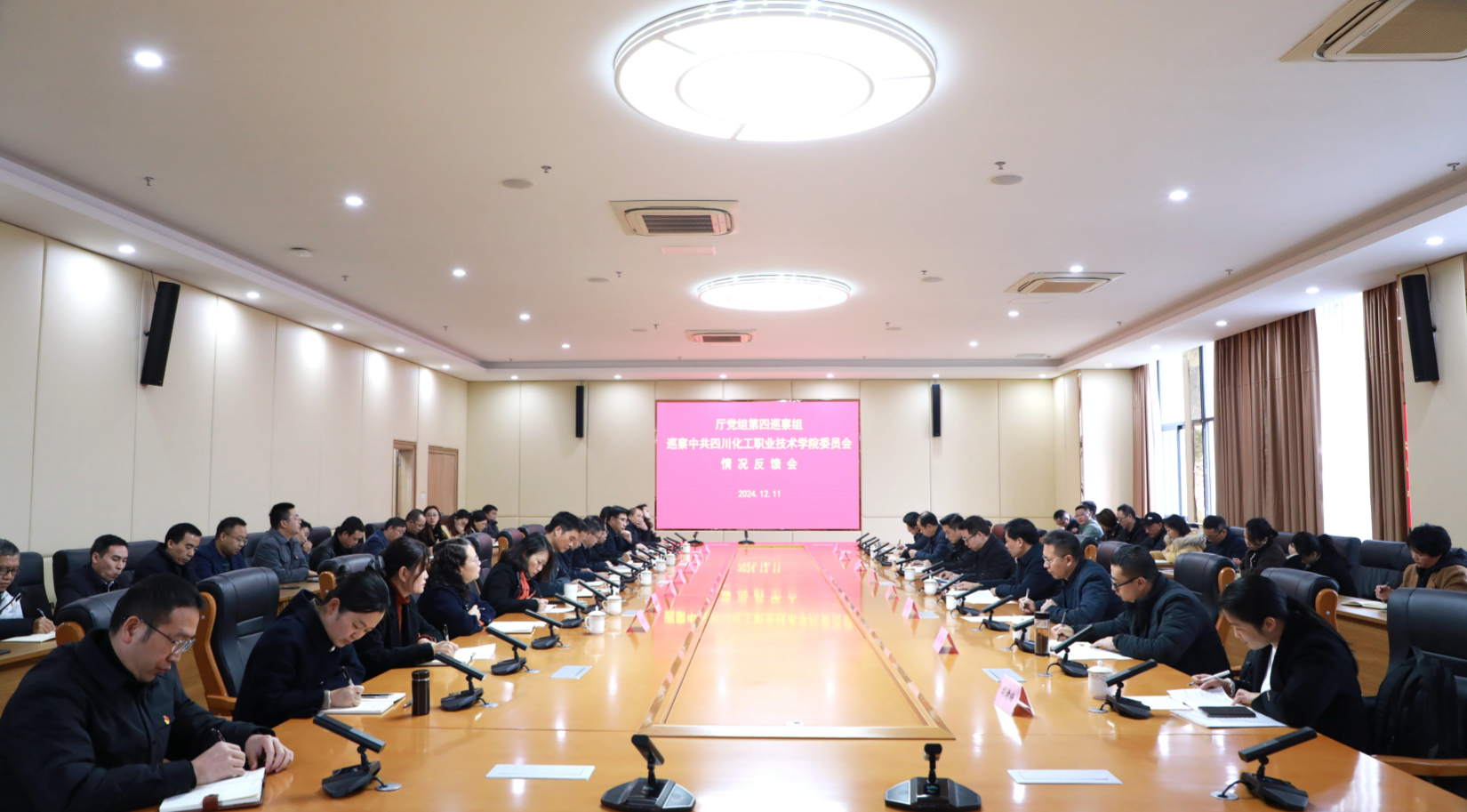 2024年12月11日,厅党组第四巡察组向学院党委反馈巡察“回头看”情况。厅党组第四巡察组组长、二级巡视员周勇对巡察情况进行了反馈,厅巡察办副主任邓华云传达了厅党组巡察工作会议精神,就做好巡察整改工作提出要求。学院党委书记刘志勇主持会议并就做好巡察整改工作作表态发言。