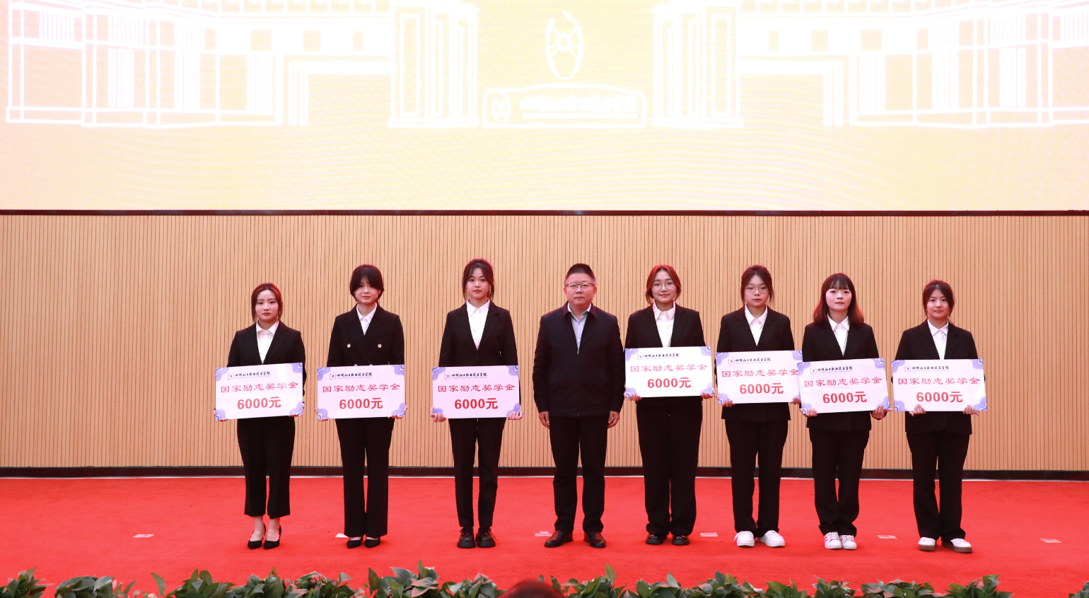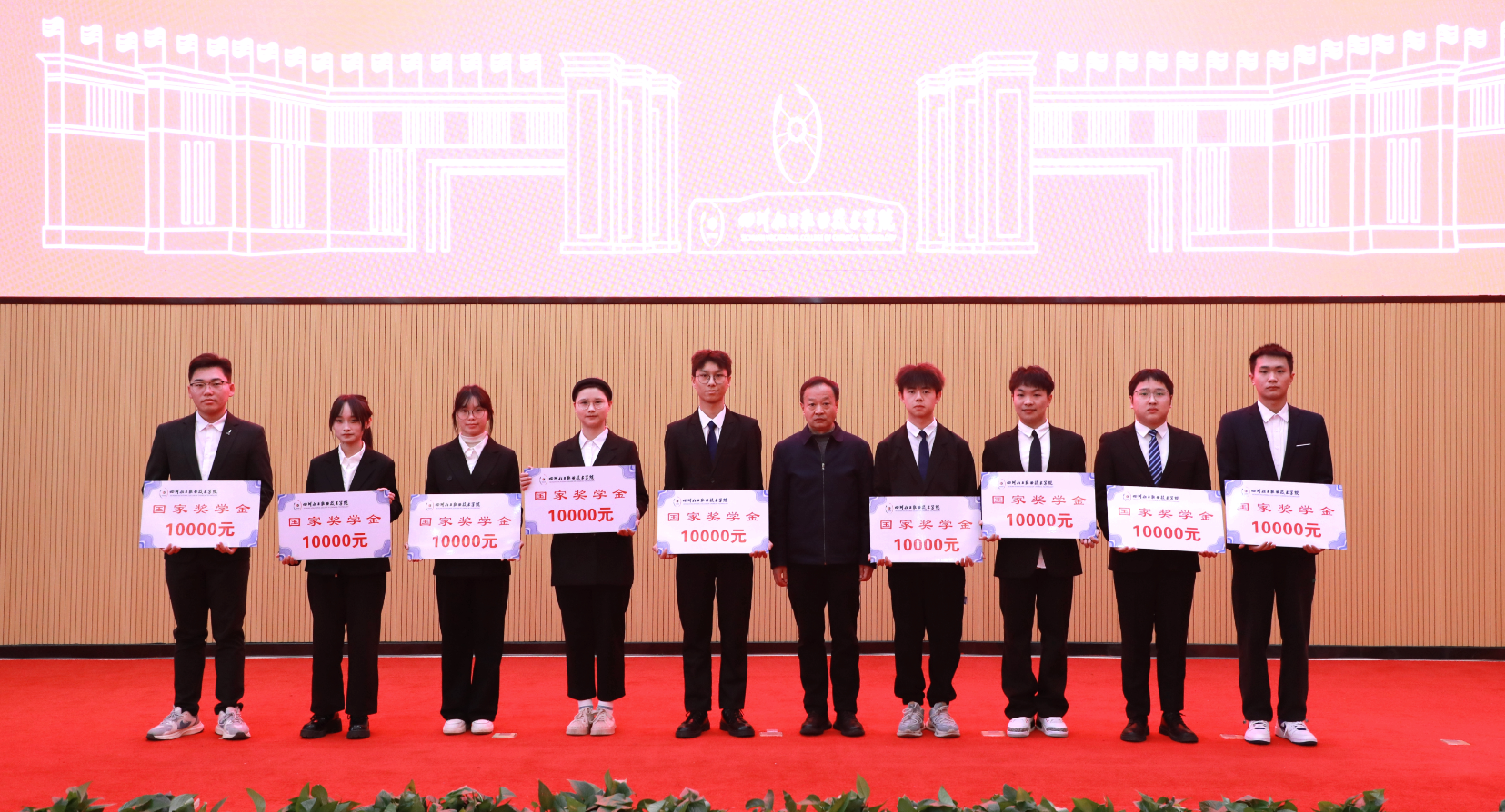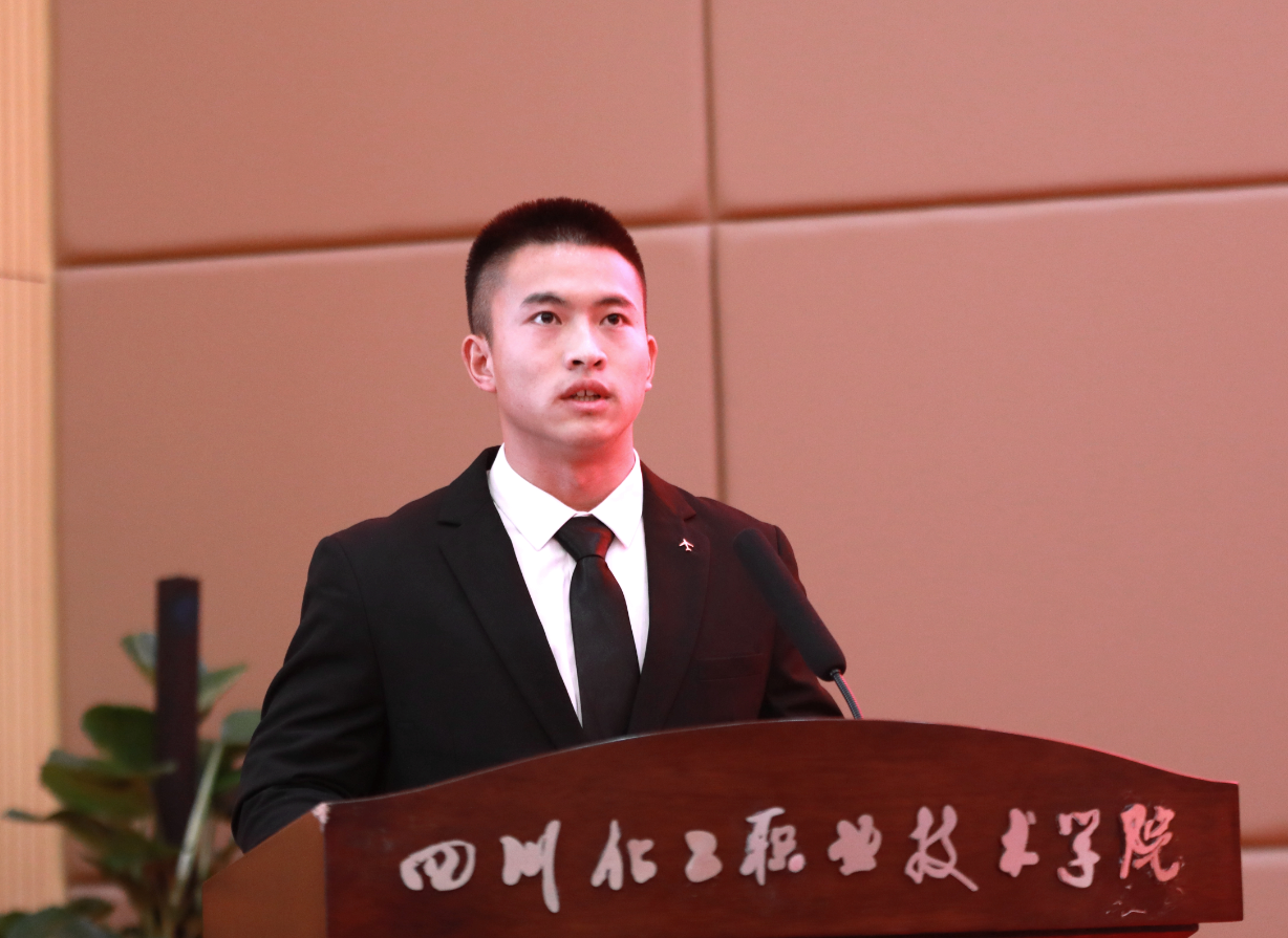 获奖学生代表川酒学院食品检验检测2332班、“中国教育电视台·外研社杯”职场英语挑战赛短视频大赛三等奖、四川省“高教社杯”大学生“用外语讲好中国故事”优秀短视频大赛三等奖获得者张景钥在发言中鼓励同学们在平凡中追求卓越,在挑战中实现自我超越,在人生的舞台上,绽放出属于自己的青春底色;优秀退役大学生、药品与环境工程学院环境工程技术2331班、2024年世界职业院校技能大赛现代化工HSE技能赛项金奖获得者刘正宣在发言中提到,在以后的学习和工作中将继续传承军人的优良作风,用自律、坚韧、担当去影响身边的每一位同学,同时鼓励同学们在新时代的征程中,不断砥砺前行,书写人生精彩篇章!